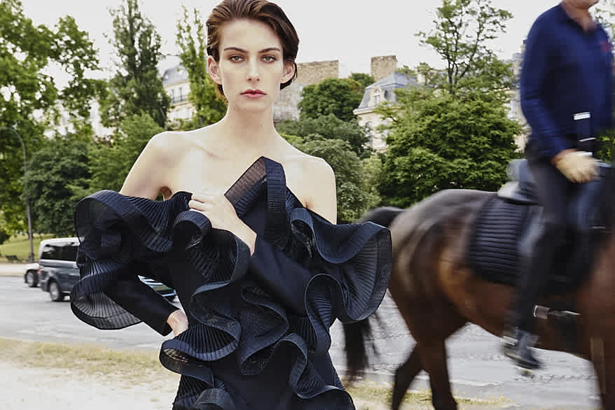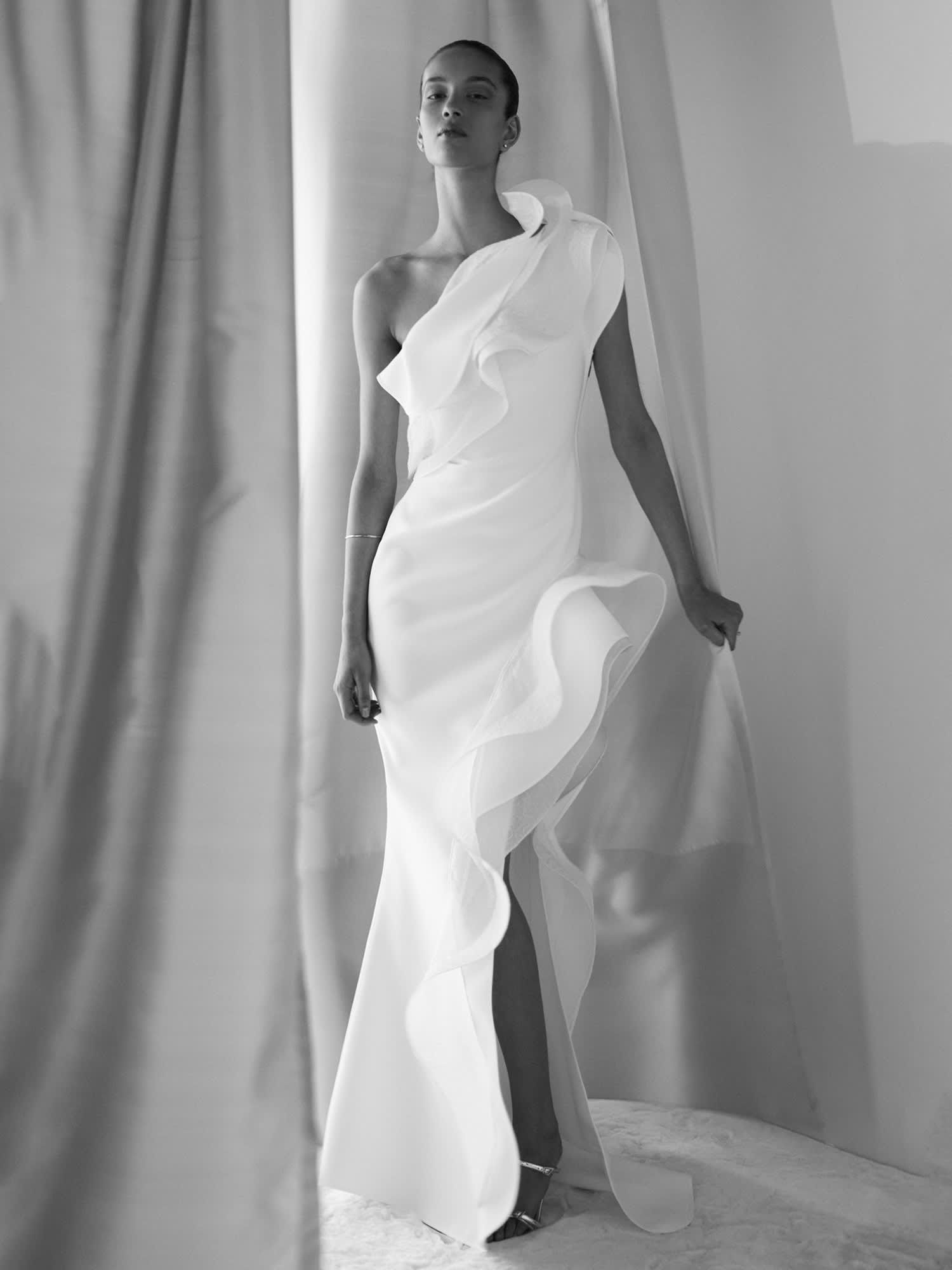 BRIDAL 25 - DRAWS UPON THE GESTURES EXPRESSED IN COLLECTIONS IN 2025. REFERENCING WAVES AND RUFFLES, CREATING DRAMA THROUGH SOFTNESS OF TOUCH AND A FLUIDITY ALL TOO FEMININE AND LANGUID.